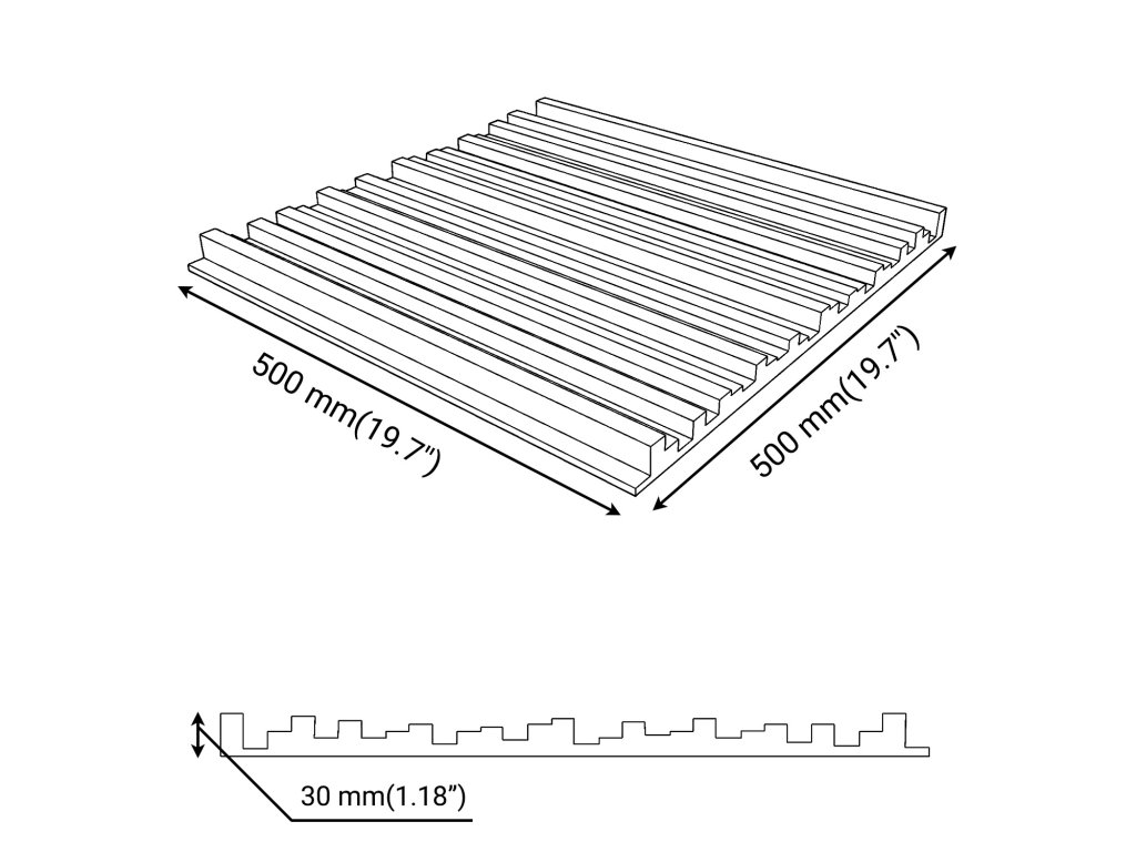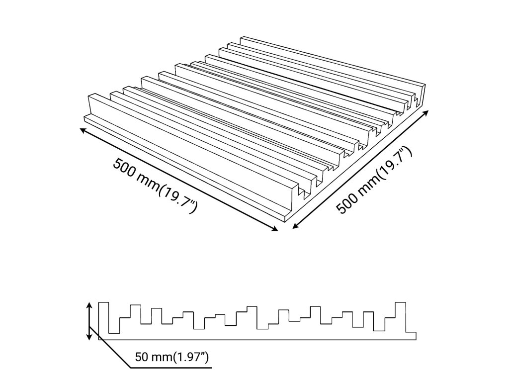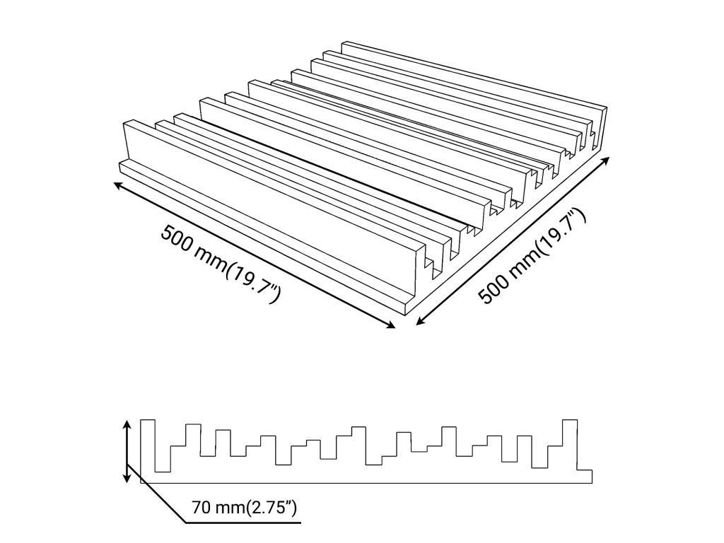 500 x 500 mm má voliteľnú hrúbku 30, 50, 70 mm,